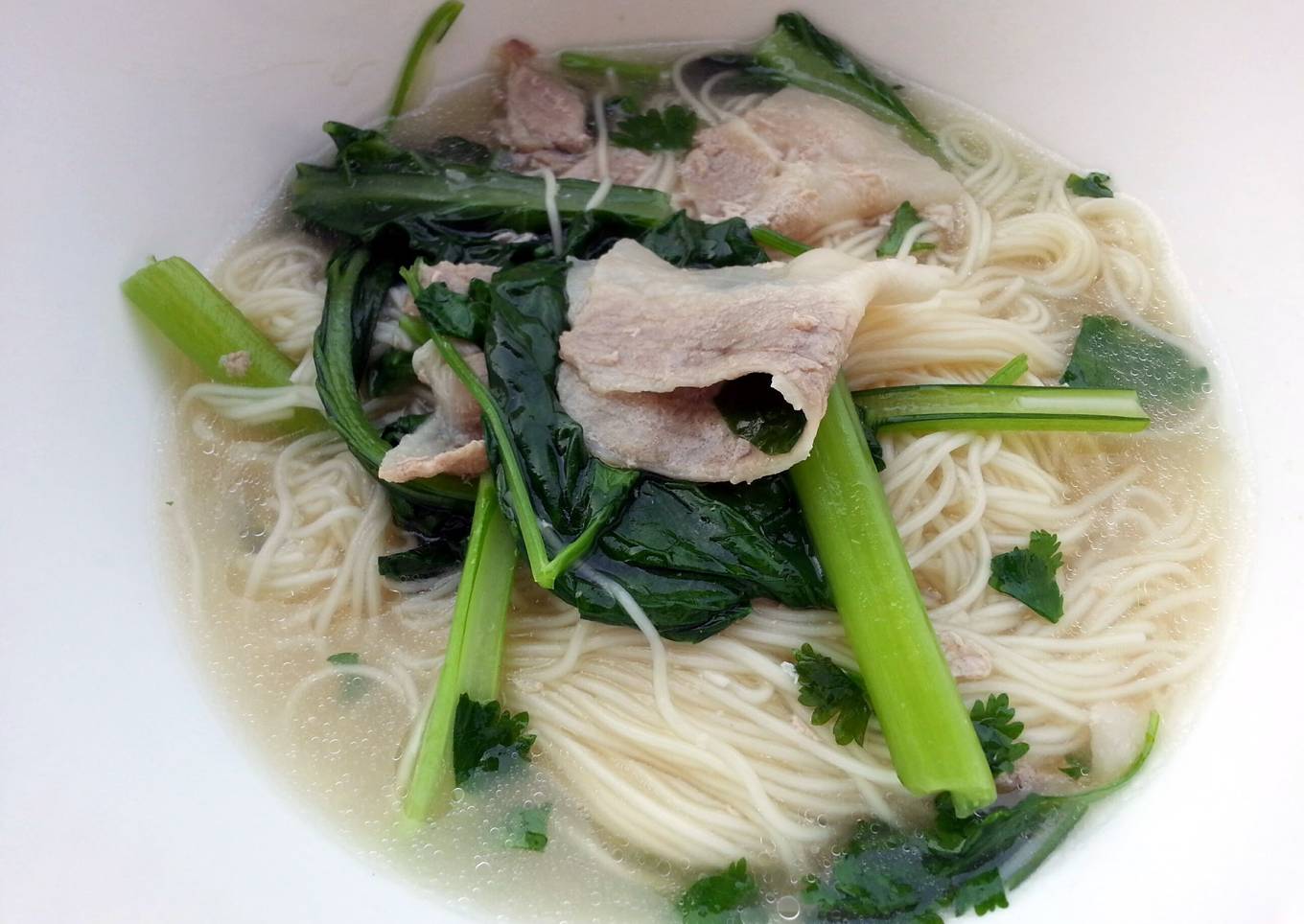 - Sieve soup then bring to a boil add somen noodle and green vegetable simmer for 2 minutes (DONT STIR AS IT WILL CAUSE SOUP TO BE CLOUDY)