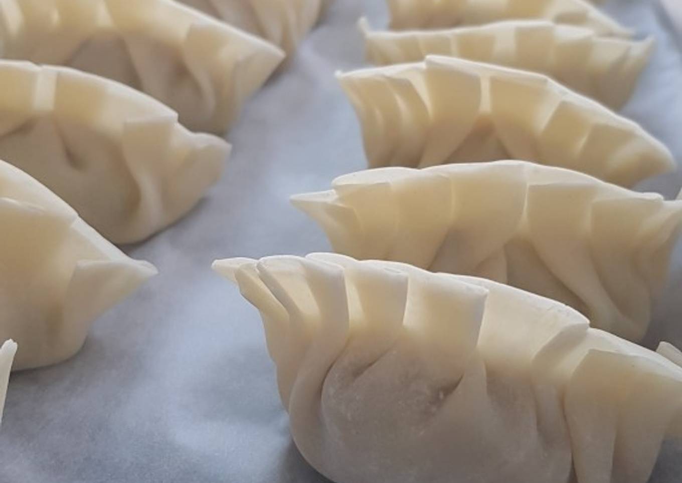 - To freeze the gyoza, transfer them on a tray lined with a baking sheet immediately after folding them. Leave space in between so they don't stick. Put the tray in the freezer. Once the gyoza are frozen, transfer to a freezer bag or Tupperware. When using them later on, DO NOT defrost: cook while frozen as described above and steam for additional 1-2 min.